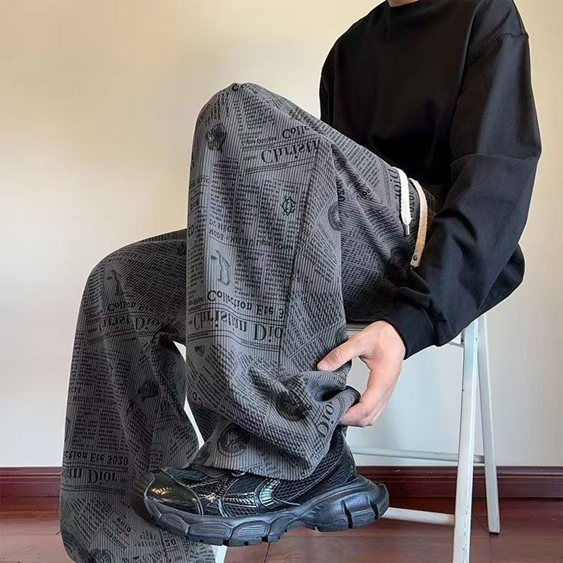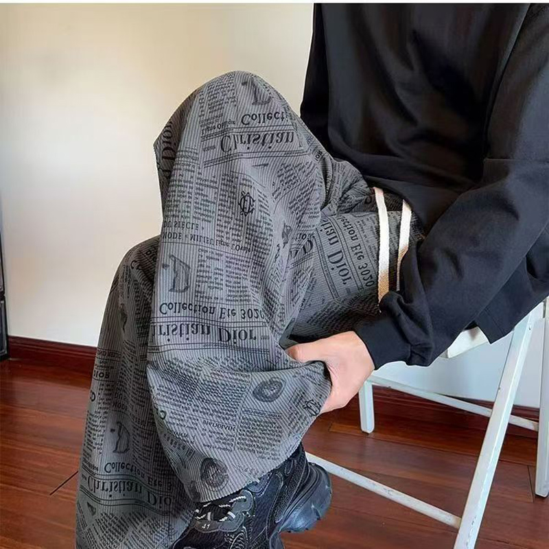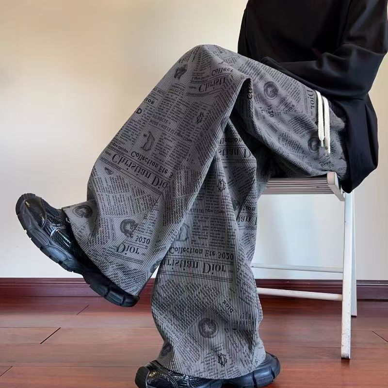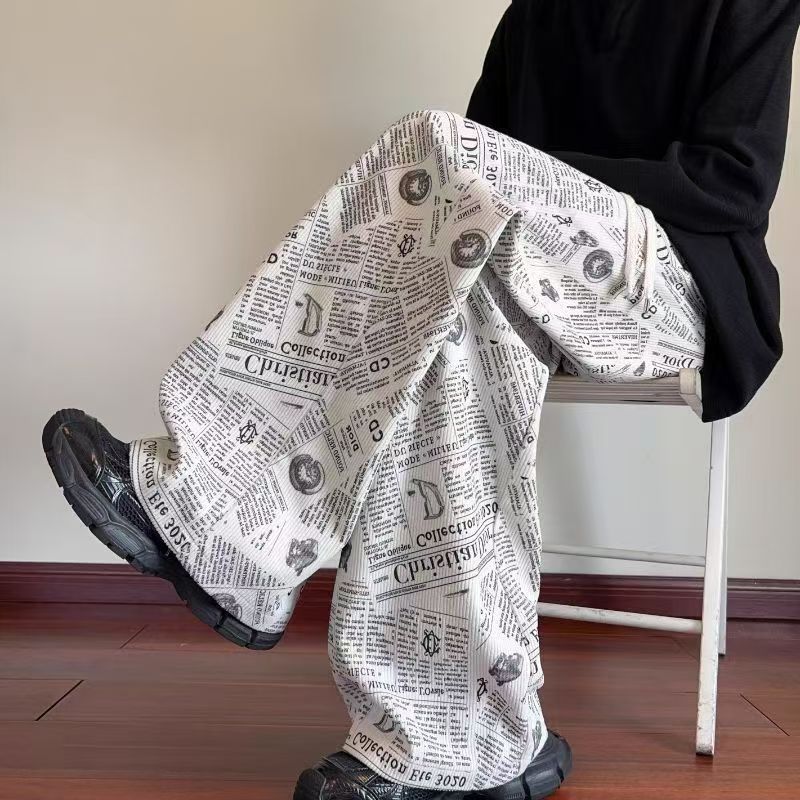 YF7008-(3色入内)秋冬时尚个性报纸印花复古设计感灯芯绒保暖慵懒风休闲裤