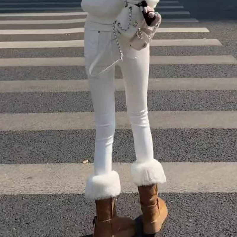 YF7072-图片色白色别致系扣高腰弹力包臀港式小脚显瘦紧身百搭牛仔裤