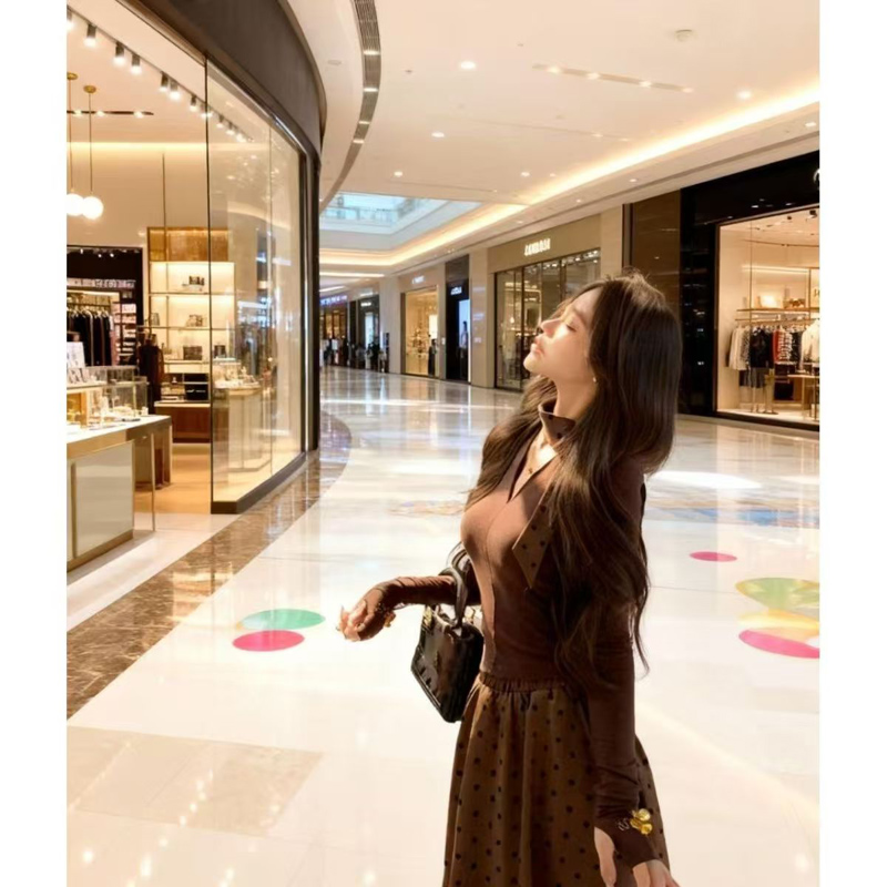 YF7091-(2色入内)纯欲风镂空长袖拼接弹力修腰包臀辣妹设计假两件连衣裙