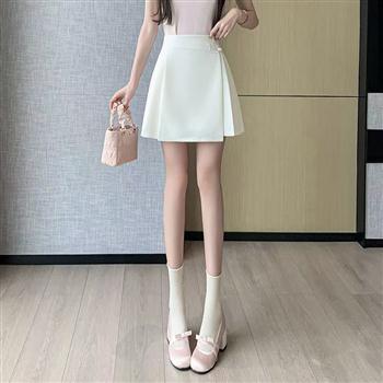YF7103-(2色入内)港式民族风系扣不规则高腰褶折开叉设计防走光短裙
