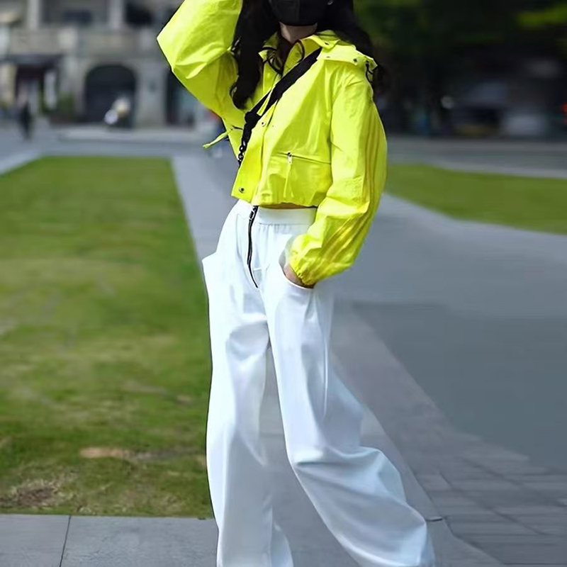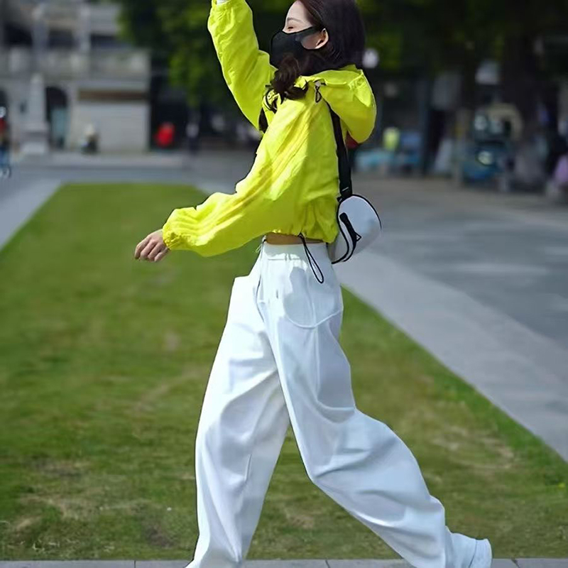 YF7123-图片色港式夏季慵懒风高腰直筒坠地感拼接哈伦风运动卫衣裤