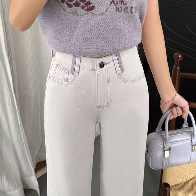 YF7191-图片色早春新款撞色系扣小众设计直筒坠地感辣妹潮牌牛仔裤