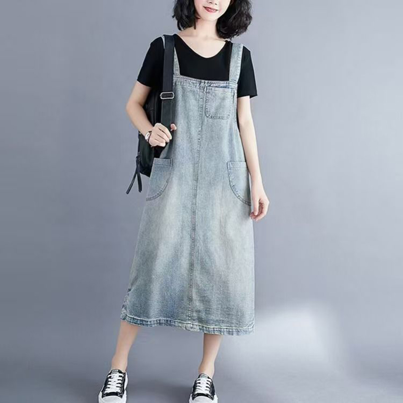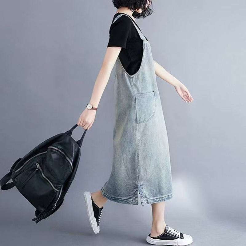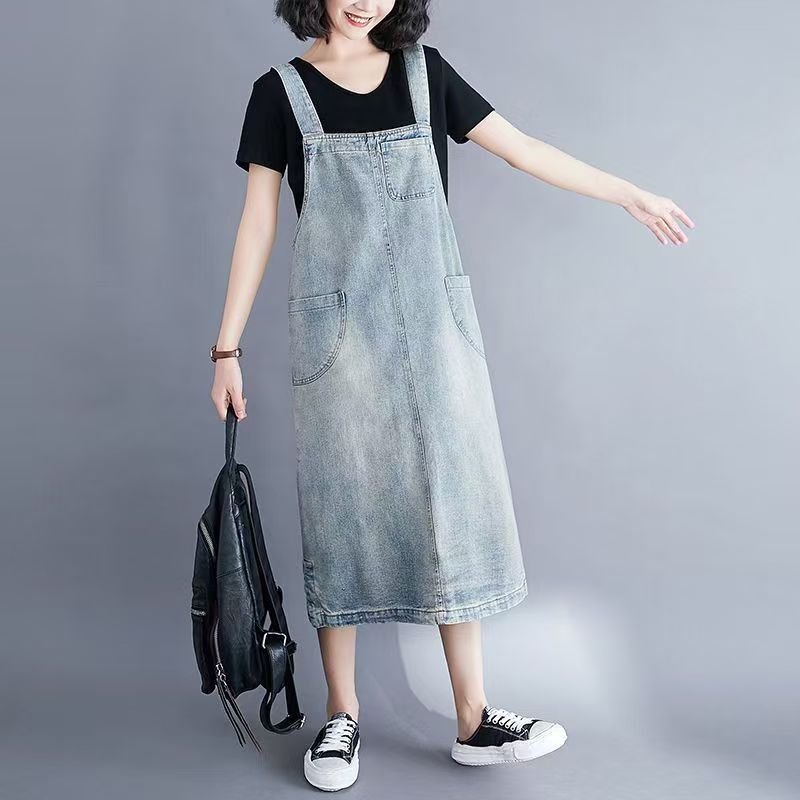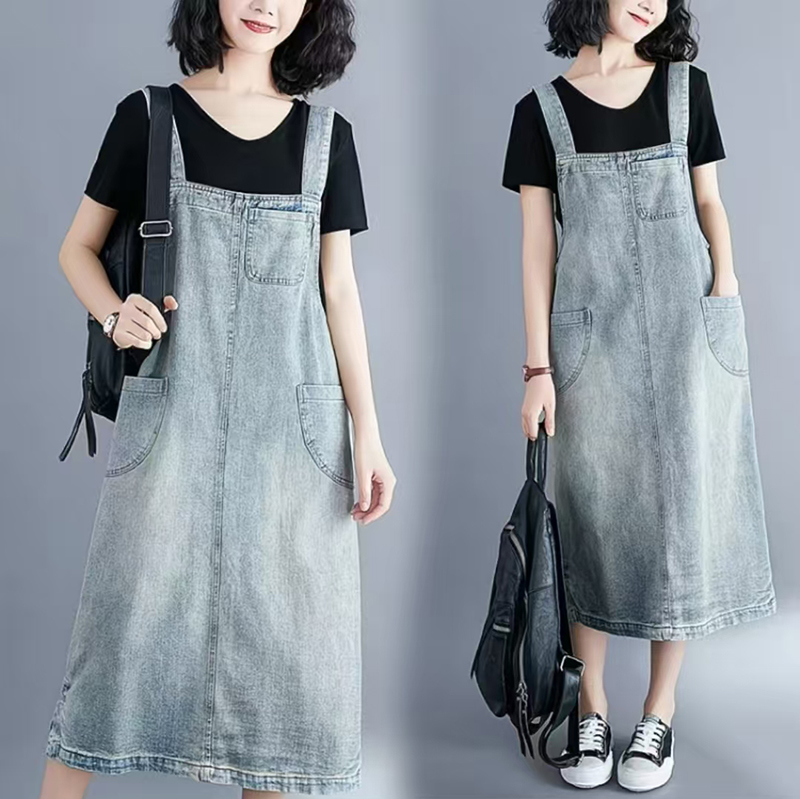 YF7208-(2色入内)夏季韩版吊带抹胸多口袋设计复古气质显瘦大码背带牛仔裙
