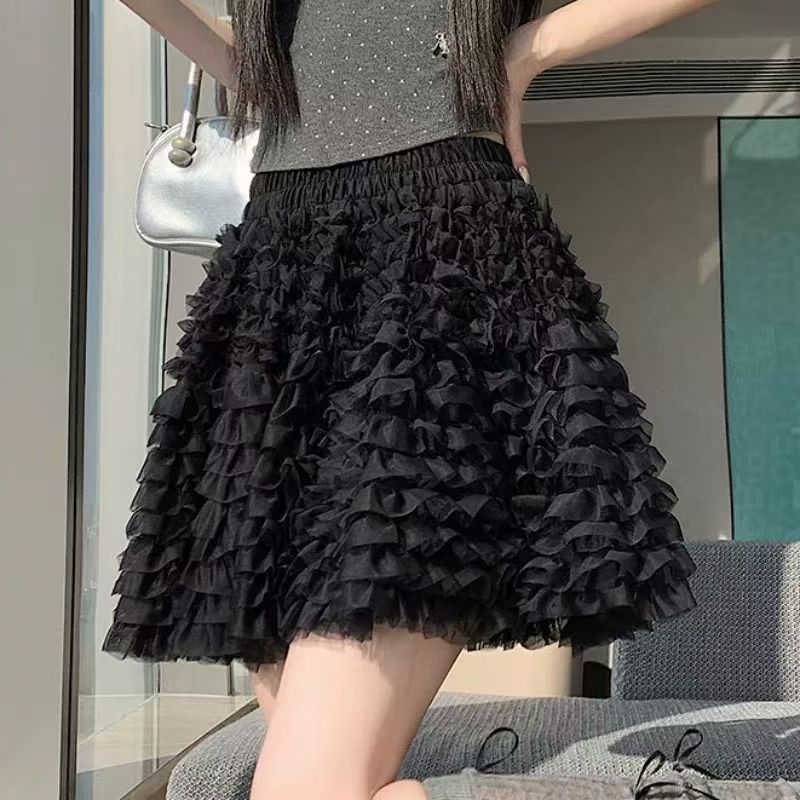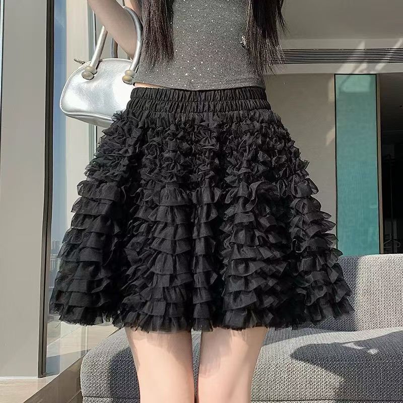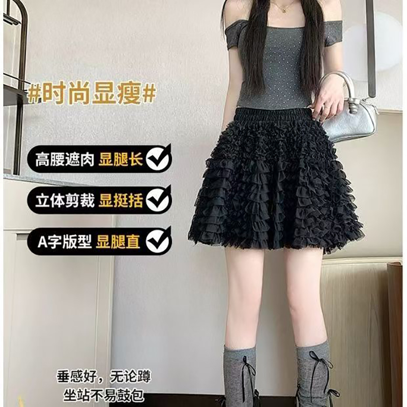YF7237-(2色入内)小可爱夏季松紧腰蕾丝蓬蓬公主短裙 时尚网纱防走光内搭A字半身裙