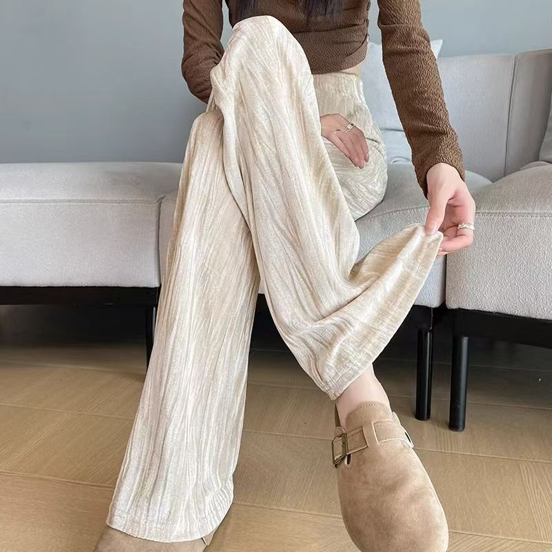 YF7278-(3色入内)慵懒风韩版新款松紧腰直筒坠地感暗条纹运动休闲百搭西装裤