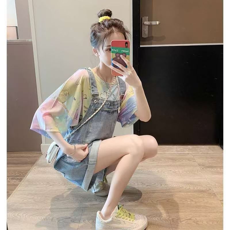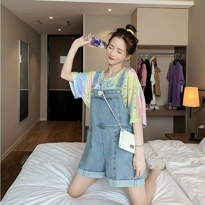 YF7291-图片色夏季新款吊带工装宽松显瘦阔腿休闲百搭牛仔连体裤