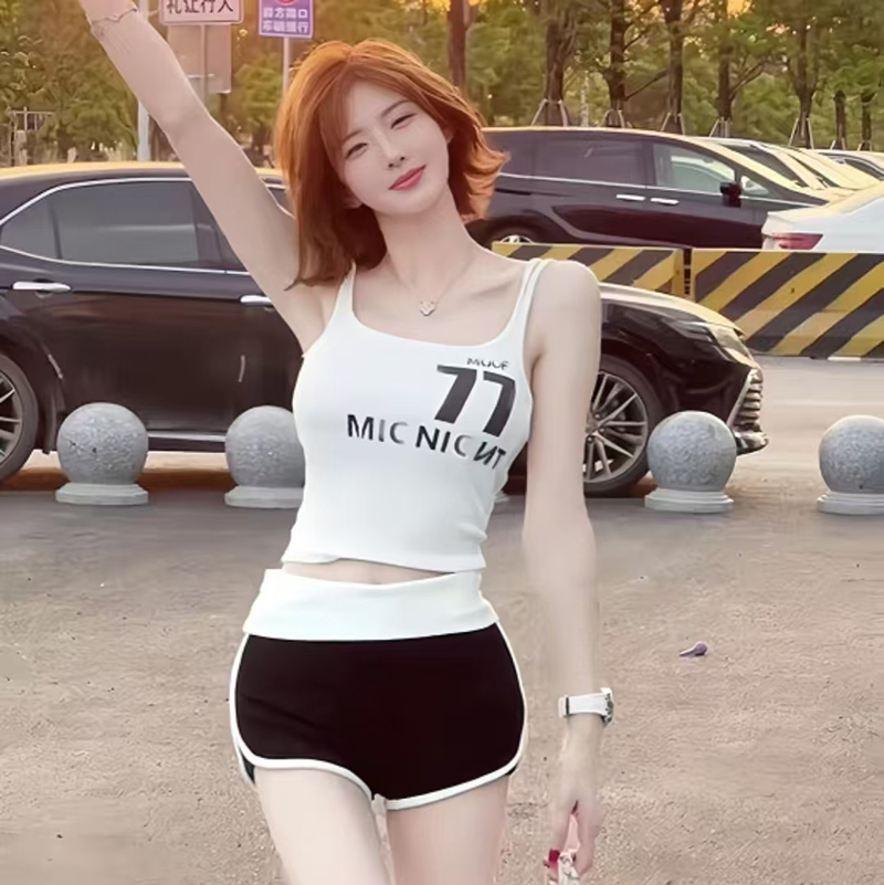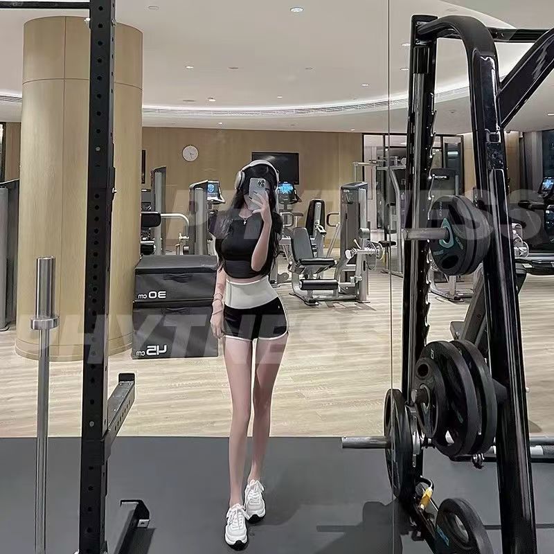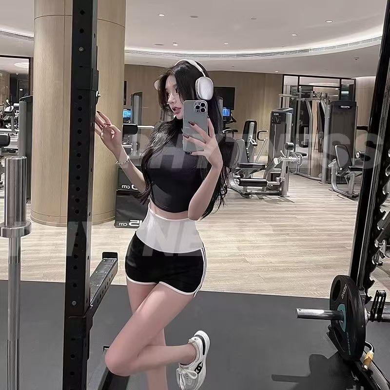 YF7406-(4色入内)美式收腹高腰撞色弹力包臀辣妹夏季运动休闲短裤新款