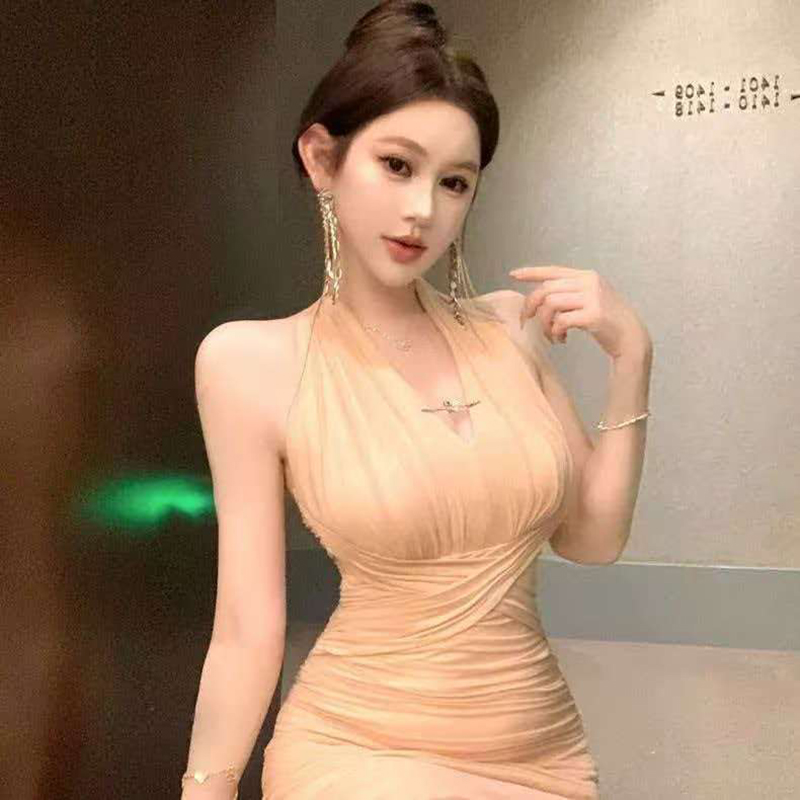 YF7481-图片色性感名媛风吊带V领挂脖交叉收腰包臀紧身显瘦礼服短裙