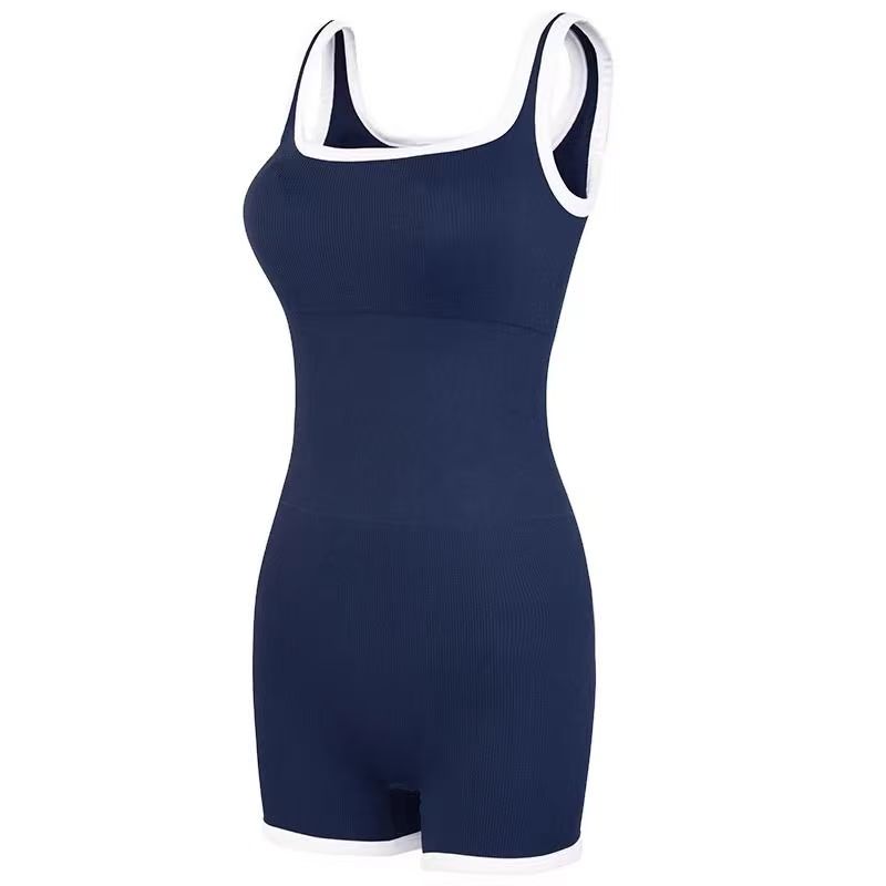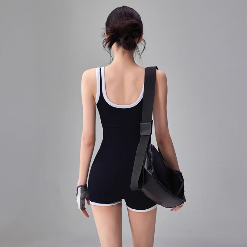YF7486-图片色夏季纯欲风黑白拼接吊逞弹力修腰包臀外穿冰丝健身连体裤