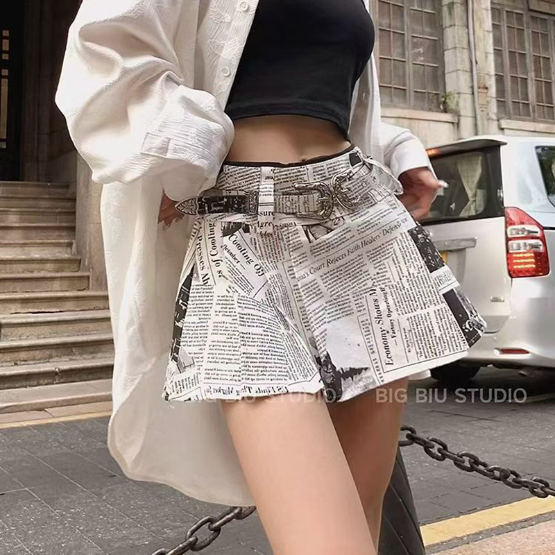 YF7492-图片色时尚个性纸巾字母印花收腹高腰防走光显瘦设计感半身短裙