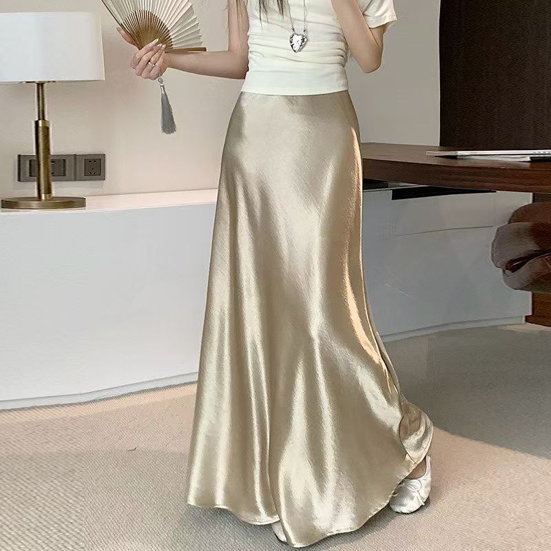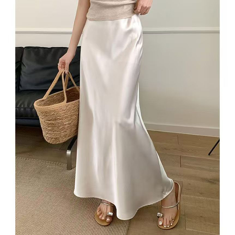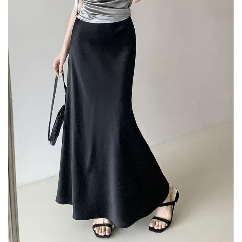 YF7504-(3色入内)名媛气质低腰包臀鱼尾中长款缎面丝滑高级感简约半身裙