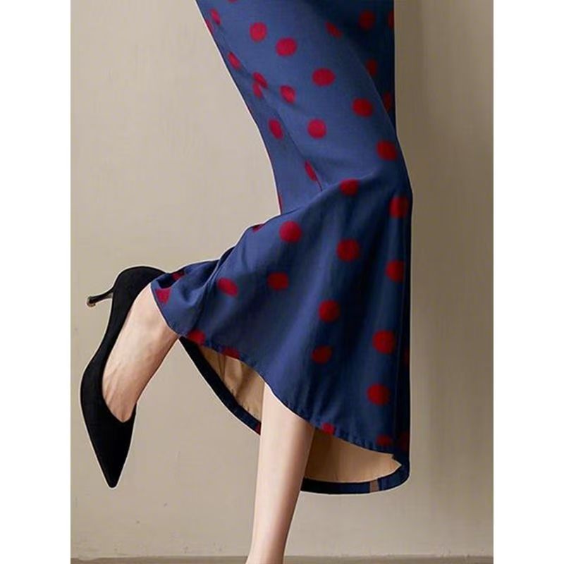 YF7507-图片色优雅时尚收腹高腰包臀过膝碎花蓝色A字显瘦雪纺裙