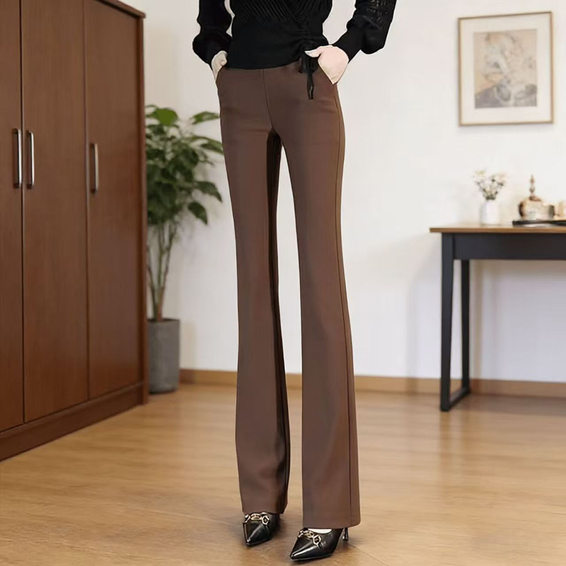 YF7258-(3色入内)时尚微喇叭系扣高腰弹力提臀坠地感韩版新款休闲喇叭裤