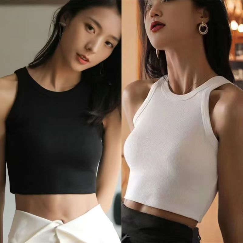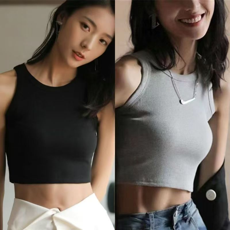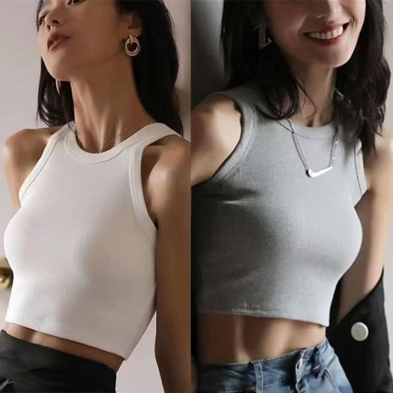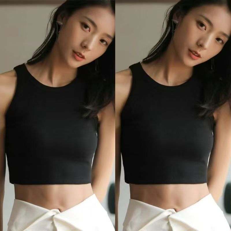 YF7394-(3色入内)夏季短款性感露脐无袖纯色百搭小背心 外穿休闲上衣